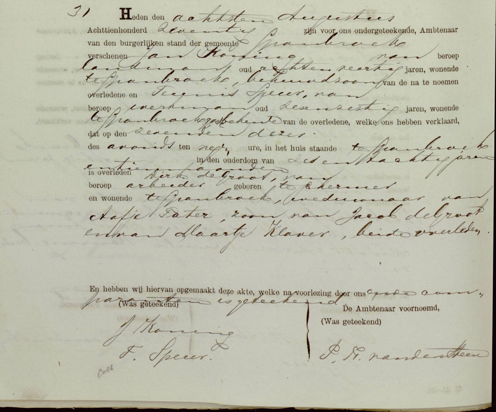 | Overleden: | 7 augustus 1870 Spanbroek |
