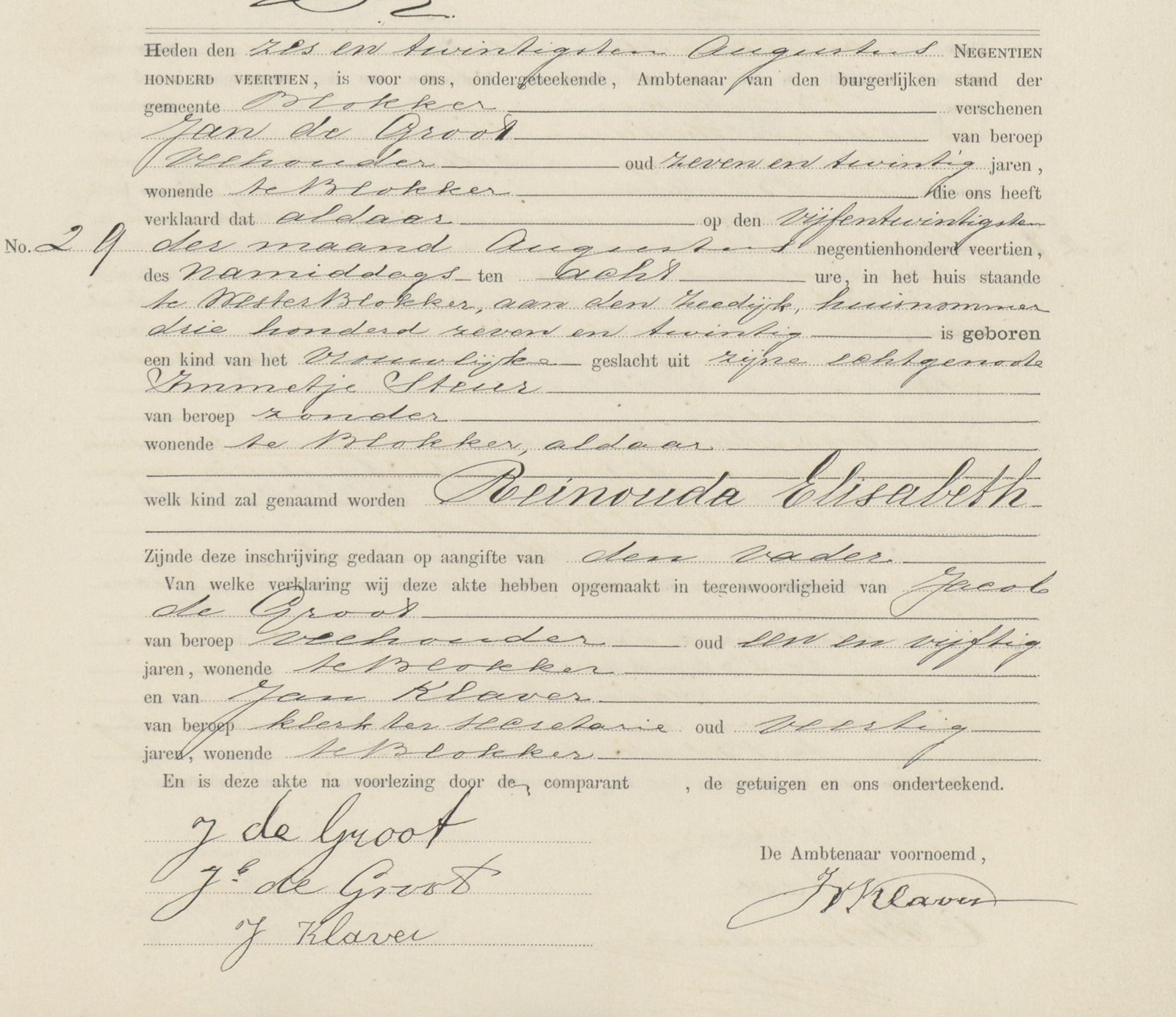 | Ouders: | 10Jan de Groot 11Immetje Steur |